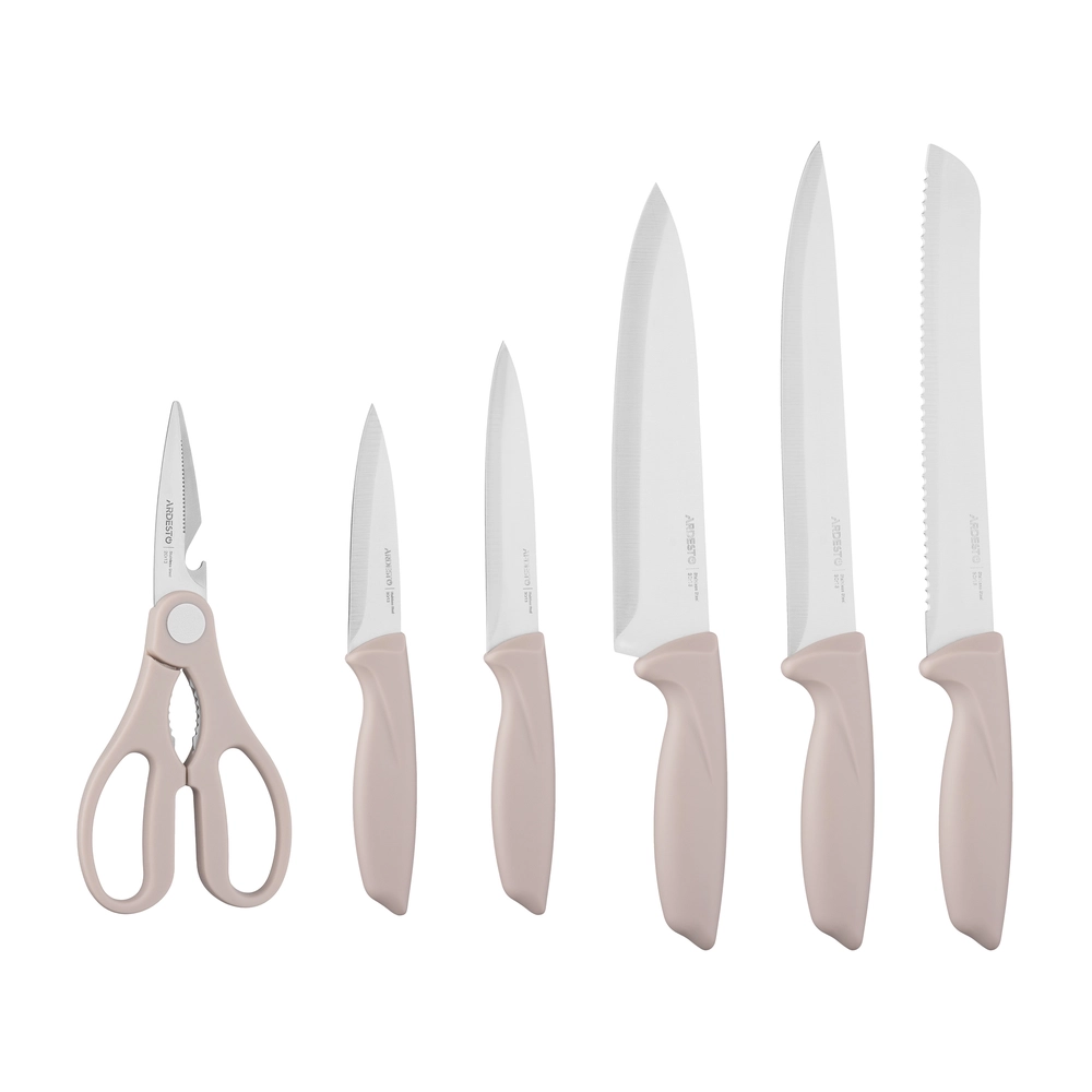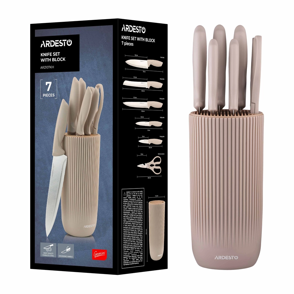 Набір ножів з блоком Ardesto Gemini, 7 предметів, нержавіюча сталь, пластик, бежевий AR2107KH ARDESTO Kitchenware - інтернет магазин europosud.ua!