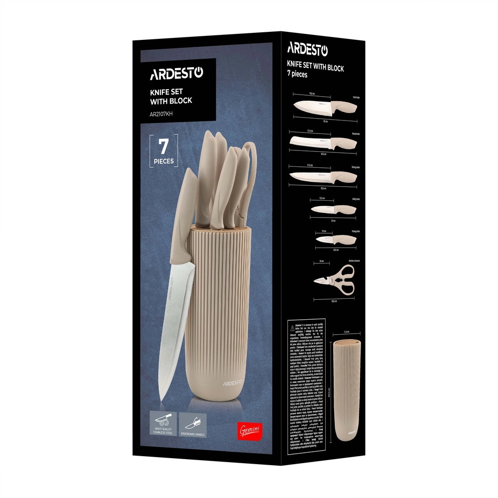 Набір ножів з блоком Ardesto Gemini, 7 предметів, нержавіюча сталь, пластик, бежевий AR2107KH ARDESTO Kitchenware - купити в магазині