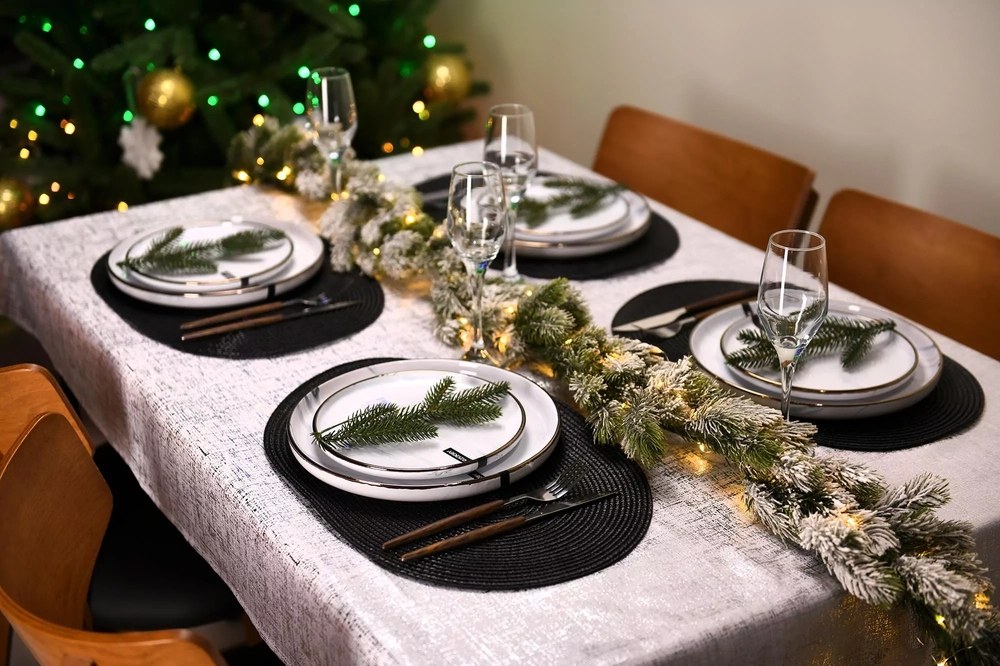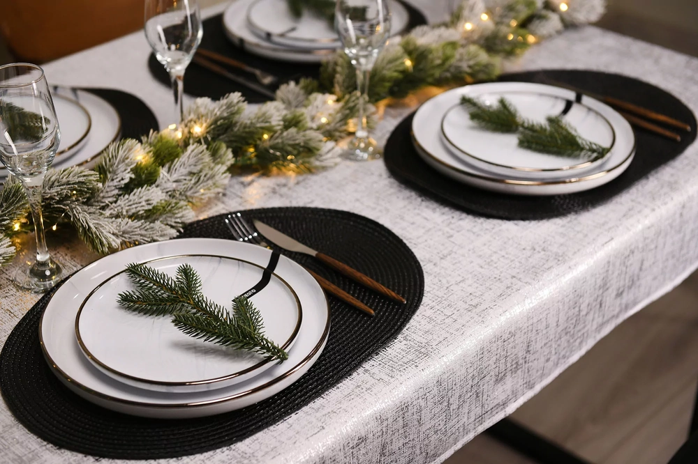 Скатертина Ardesto Shine 120х140см, 100% поліестер, сріблястий ART07SS - інтернет магазин europosud.ua!