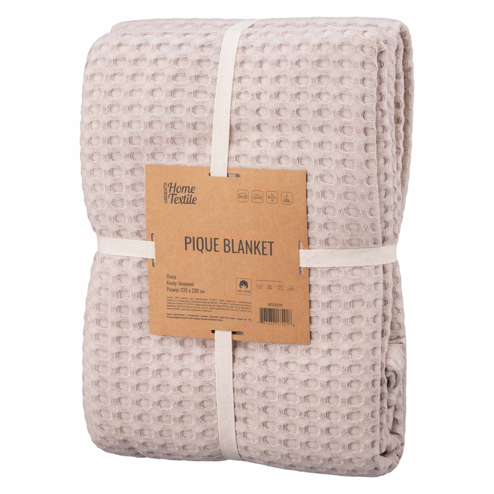 Плед Ardesto Pique 220x230см, 100% бавовна, бежевий ART0822PE - інтернет магазин europosud.ua!