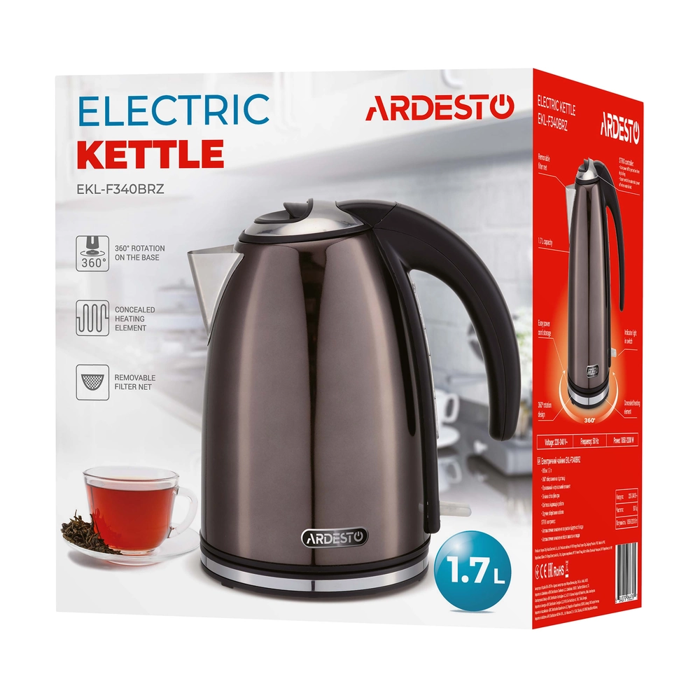 Електрочайник Ardesto 1.7л, Strix, метал, бронзовий глянець EKL-F340BRZ - інтернет магазин europosud.ua!