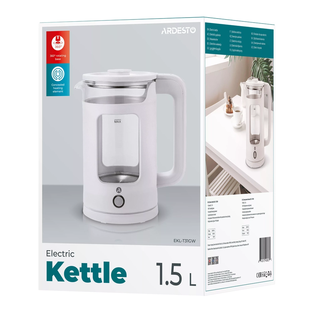 Електрочайник Ardesto 1.5л, скло+пластик, білий EKL-T31GW - інтернет магазин europosud.ua!