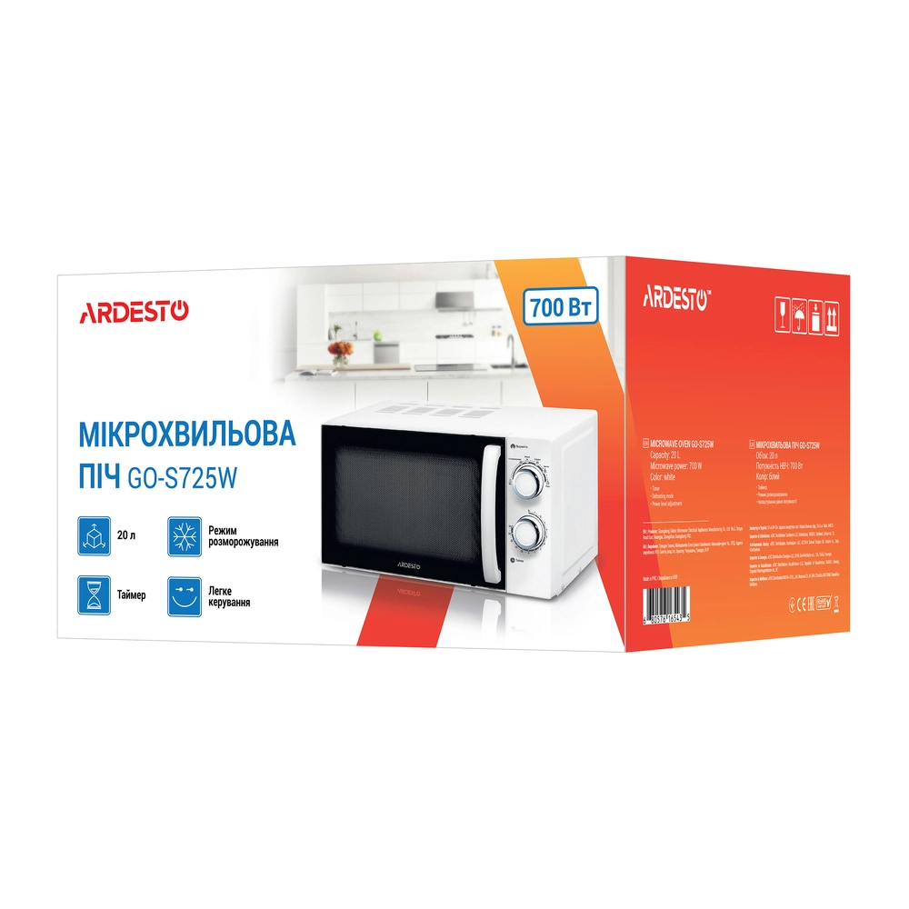 Мікрохвильова піч ARDESTO, 20л, мех.керув., 700Вт, відкр.ручкою, білий GO-S725W - інтернет магазин europosud.ua!