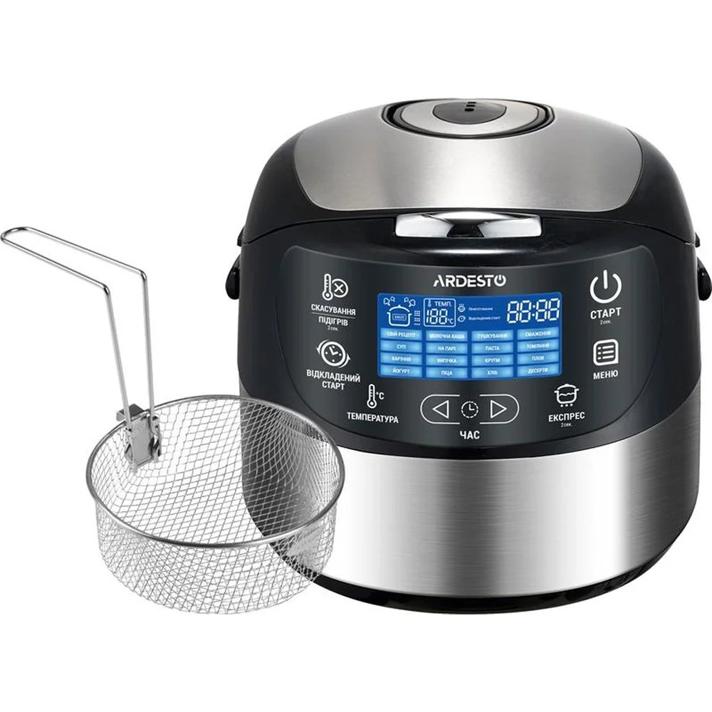 Мультиварка Ardesto, 860Вт, чаша-5л, електронне керування, корзина для фритюру, метал/пластик, сріб - інтернет магазин europosud.ua!