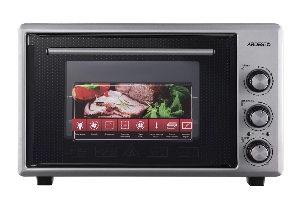 Піч електрична ARDESTO, 40л, 1300Вт, механіч., конвекція, подвійне скло, сірий MEO-S40FGG - інтернет магазин europosud.ua!