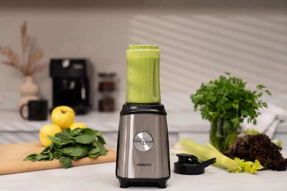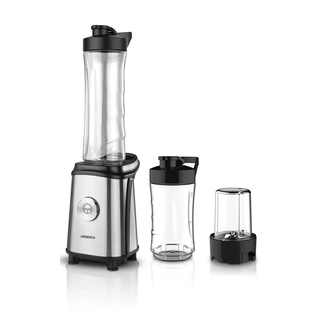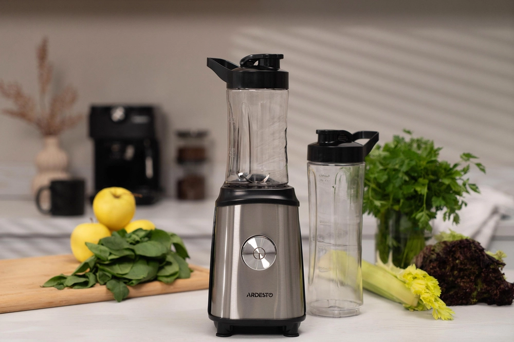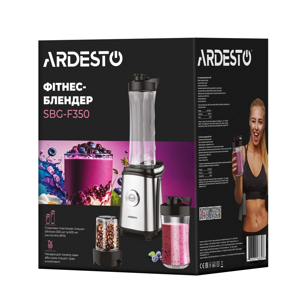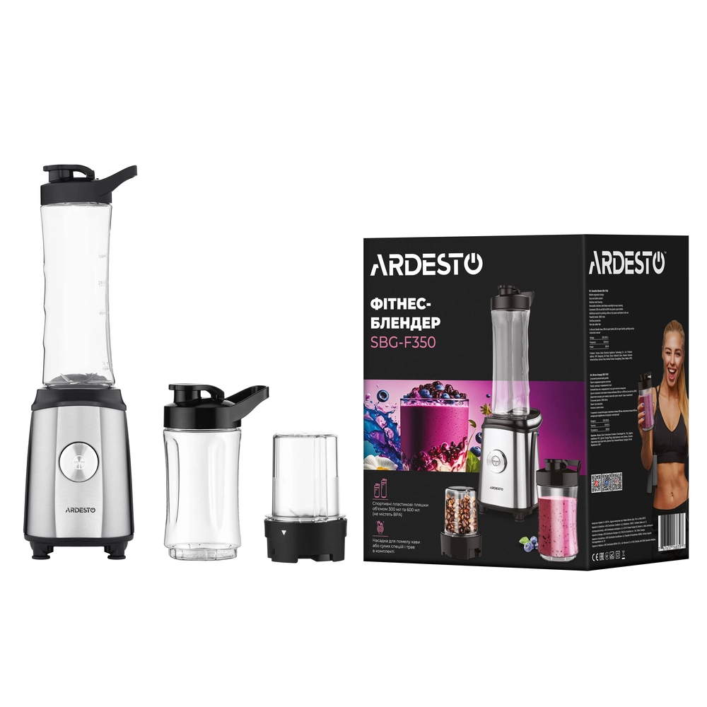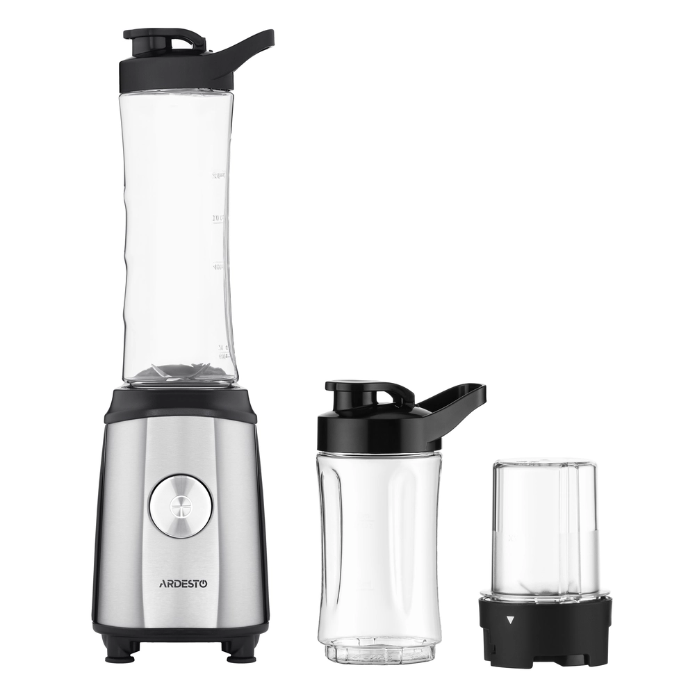 Блендер для смузі Ardesto SBG-F350, 350Вт,2в1, пляшка -600мл, пляшка -300 мл, кавомолка , чорно-сріб - купити в магазині