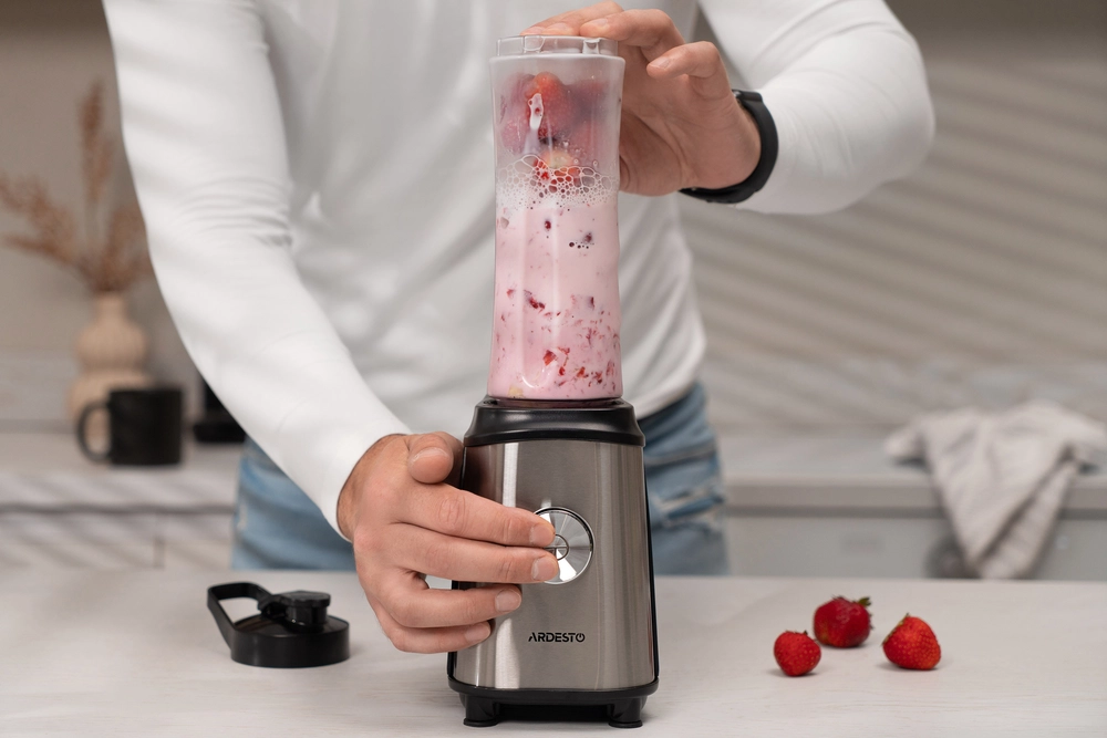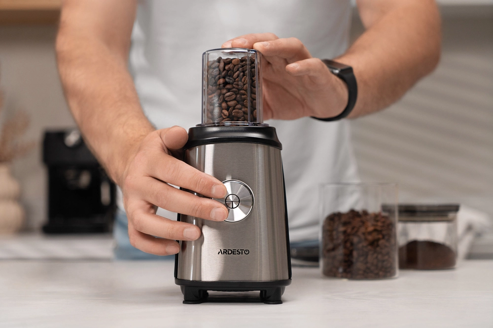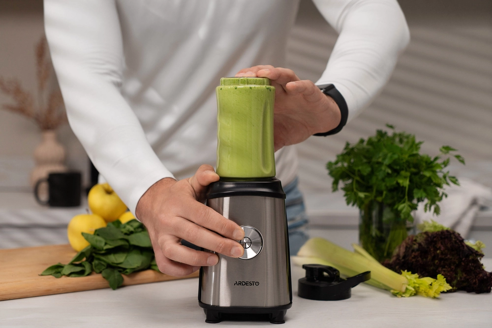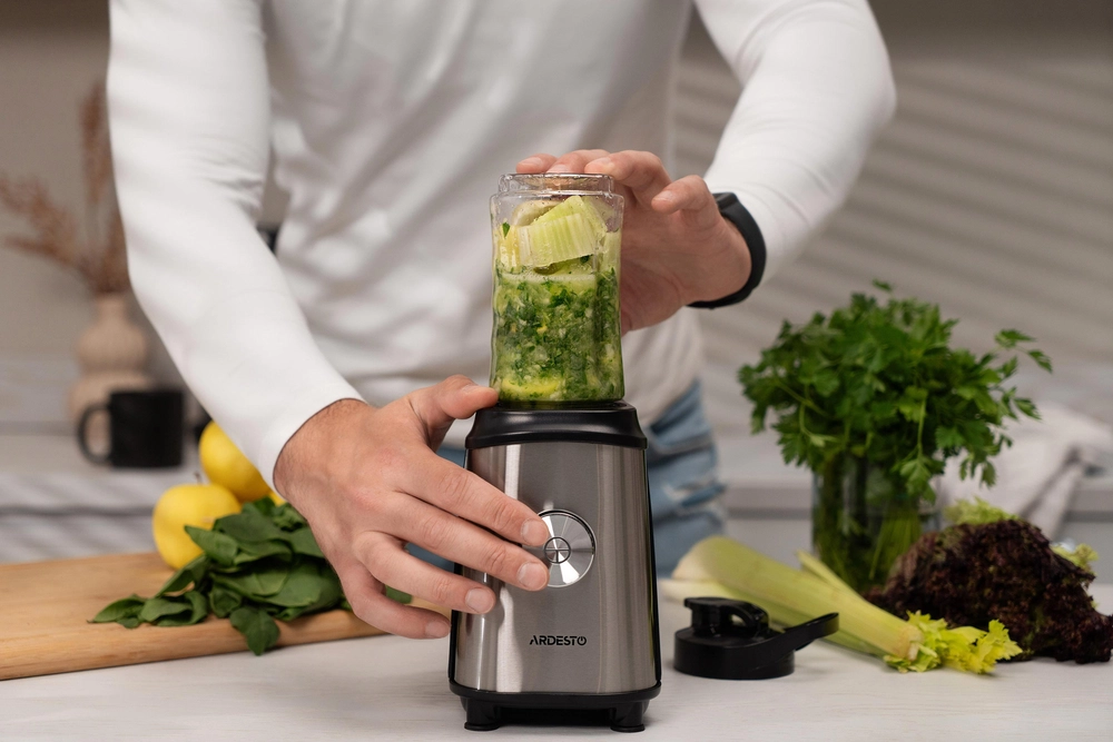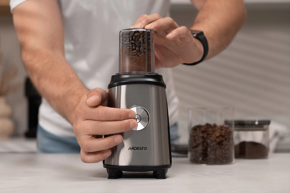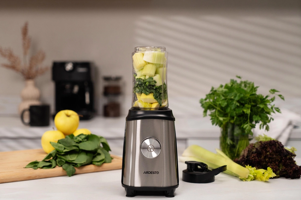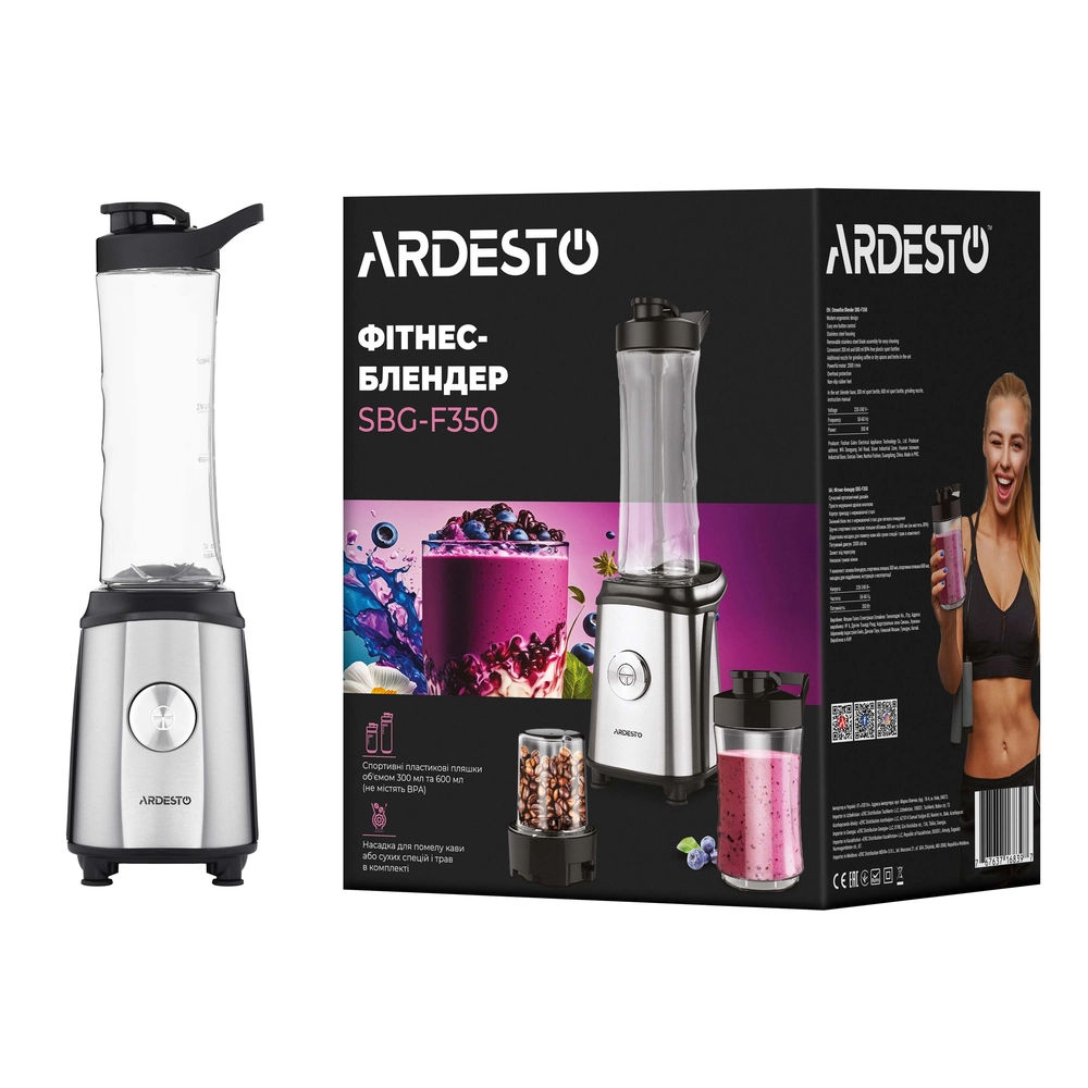 Блендер для смузі Ardesto SBG-F350, 350Вт,2в1, пляшка -600мл, пляшка -300 мл, кавомолка , чорно-сріб - інтернет магазин europosud.ua!