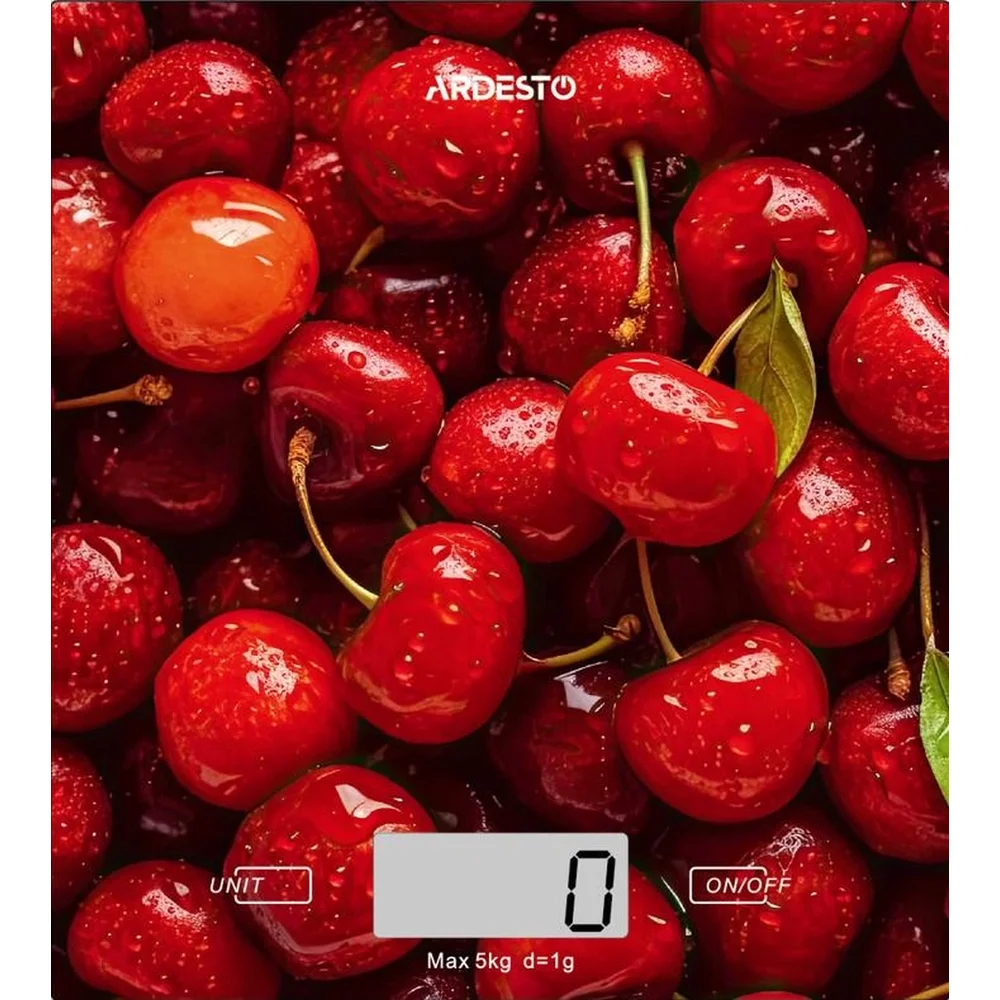 Ваги Ardesto кухонні CHERRY, 5кг, AAAx2 в комплекті, скло, багатокольоровий SCK-893CHERRY - інтернет магазин europosud.ua!