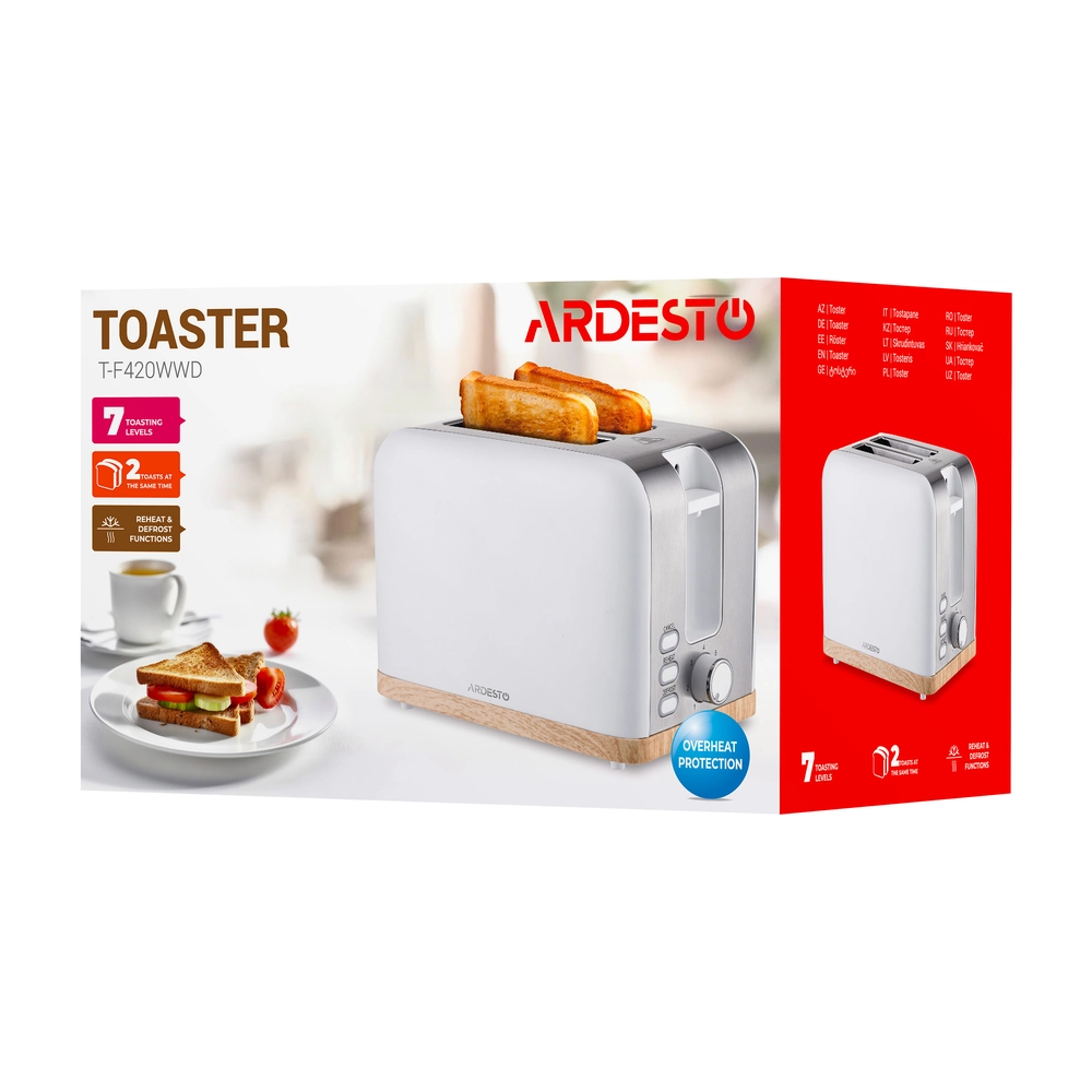 Тостер Ardesto T-F420WWD, 800Вт, метал, 2 слоти, білий T-F420WWD - інтернет магазин europosud.ua!