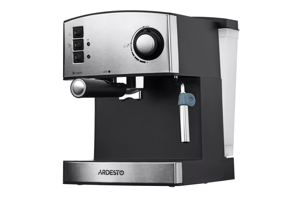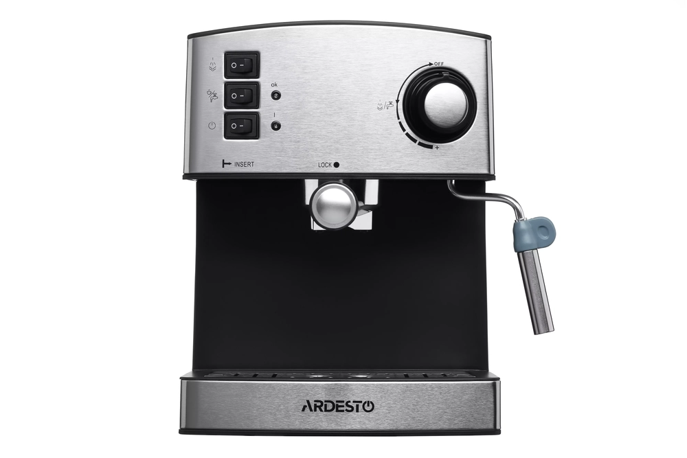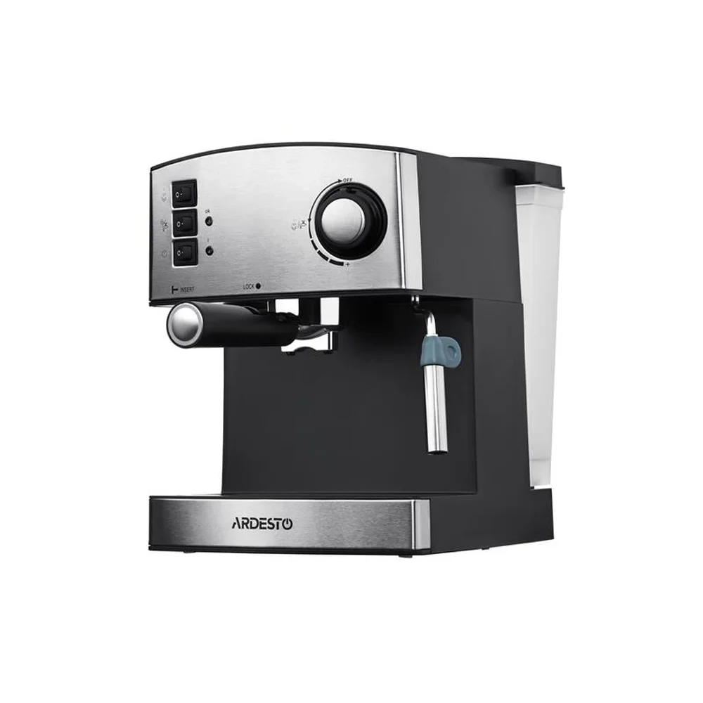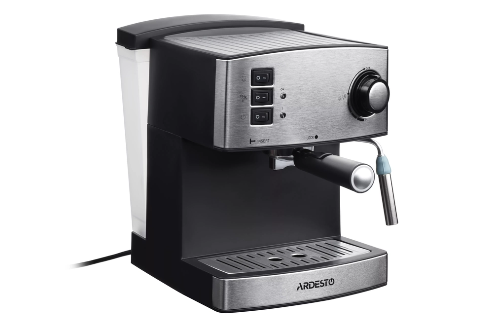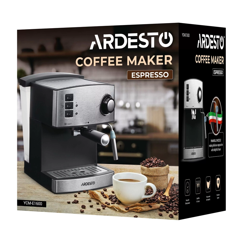 Кавоварка Ardesto ріжкова Steel Collection 1.6л, мелена, ручний капучинатор, сріблясто-чорний YCM-E1 - інтернет магазин europosud.ua!