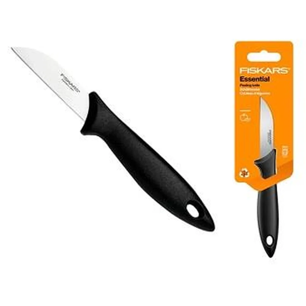 Кухонний ніж для овочів Fiskars Essential, 7см, нержавіюча сталь, пластик, чорний 1065580 - купити в магазині