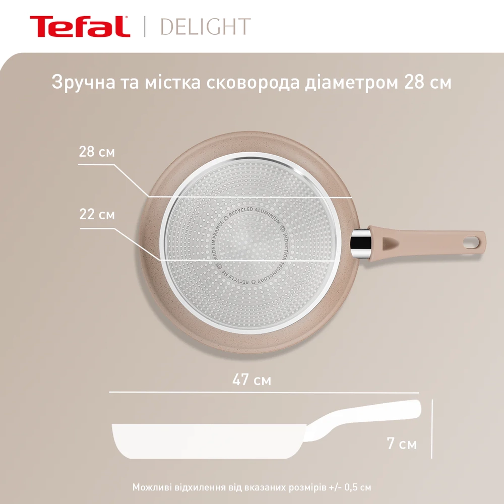 Сковорода Tefal Deligh, 28см, алюміній, бакеліт, бежевий G2930602 - інтернет магазин europosud.ua!