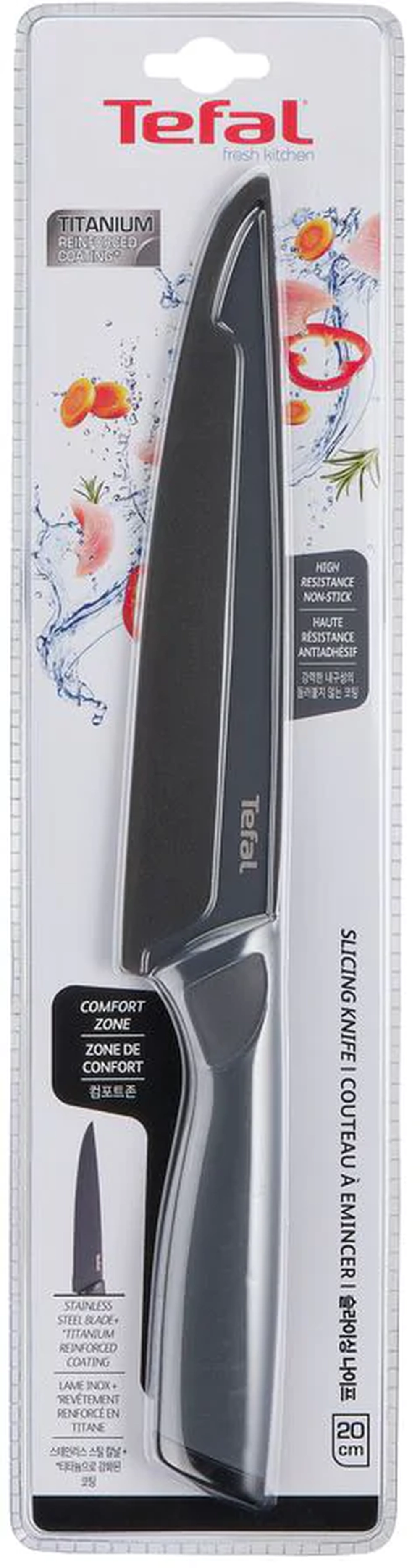 Кухонний ніж кухарський Tefal Fresh Kitchen, з чохлом, 20см, нержавіюча сталь, пластик, чорний K1221 Tefal Kitchenware - купити в магазині