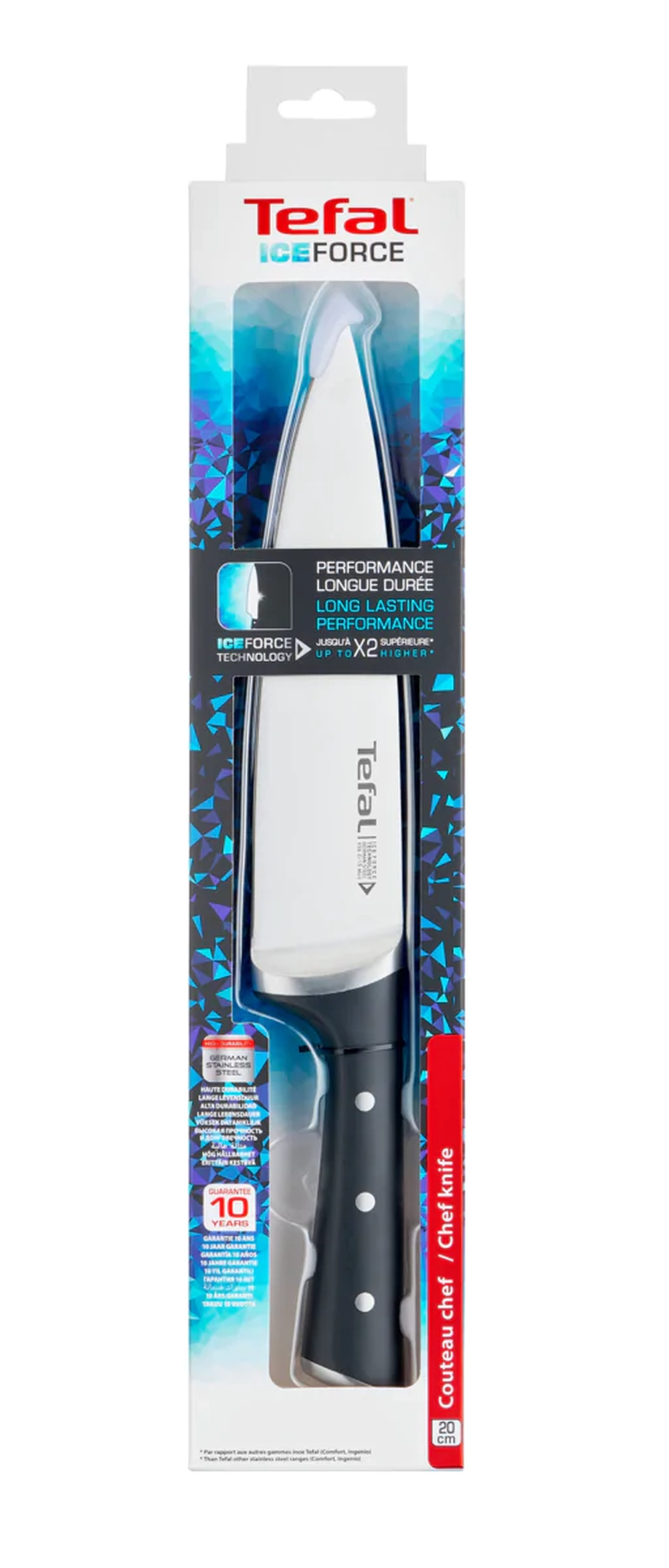 Кухонний ніж кухарський Tefal Ice Force, 20см, нержавіюча сталь, пластик, чорний K2320214 - купити в магазині