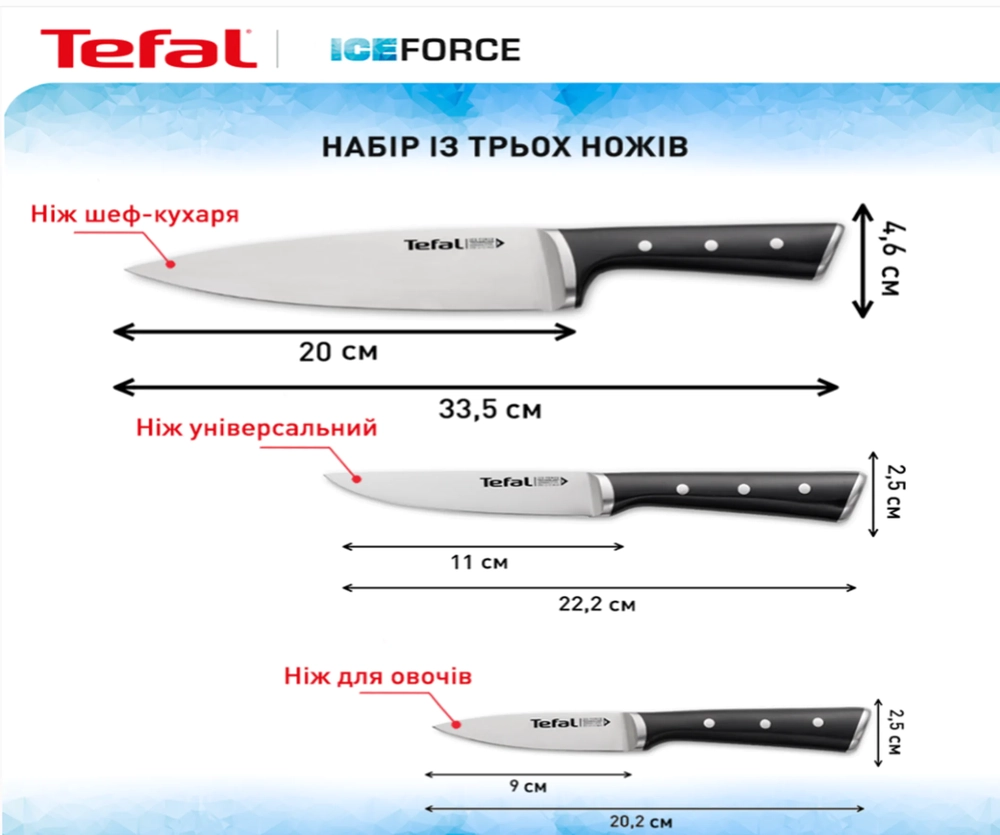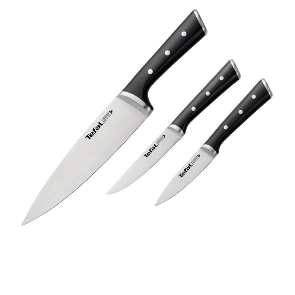Набір ножів Tefal Ice Force, 3шт, нержавіюча сталь, пластик, чорний K2323S74 - купити в магазині
