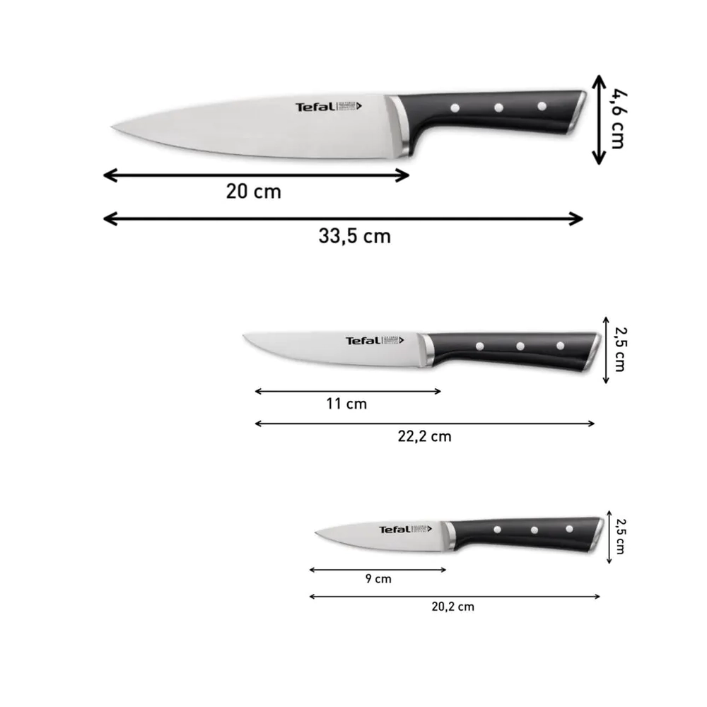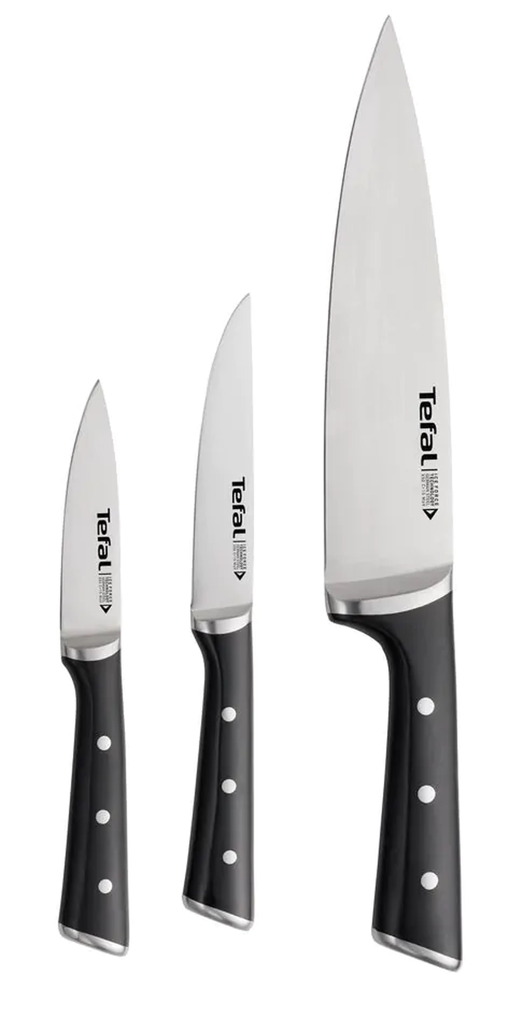 Набір ножів Tefal Ice Force, 3шт, нержавіюча сталь, пластик, чорний K2323S74 - інтернет магазин europosud.ua!
