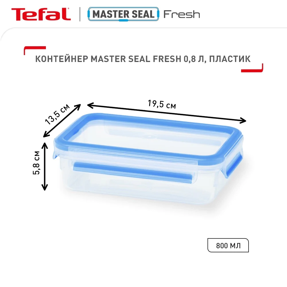 Контейнер Tefal MasterSeal, прямокутний, 800мл, пластик K3021812 - інтернет магазин europosud.ua!