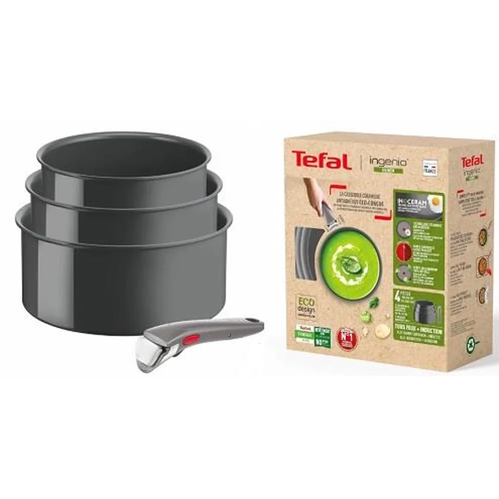 Набір посуду Tefal Ingenio Renew, 4 пр., алюміній, нержавіюча сталь, бакеліт, сірий L2609402 - інтернет магазин europosud.ua!