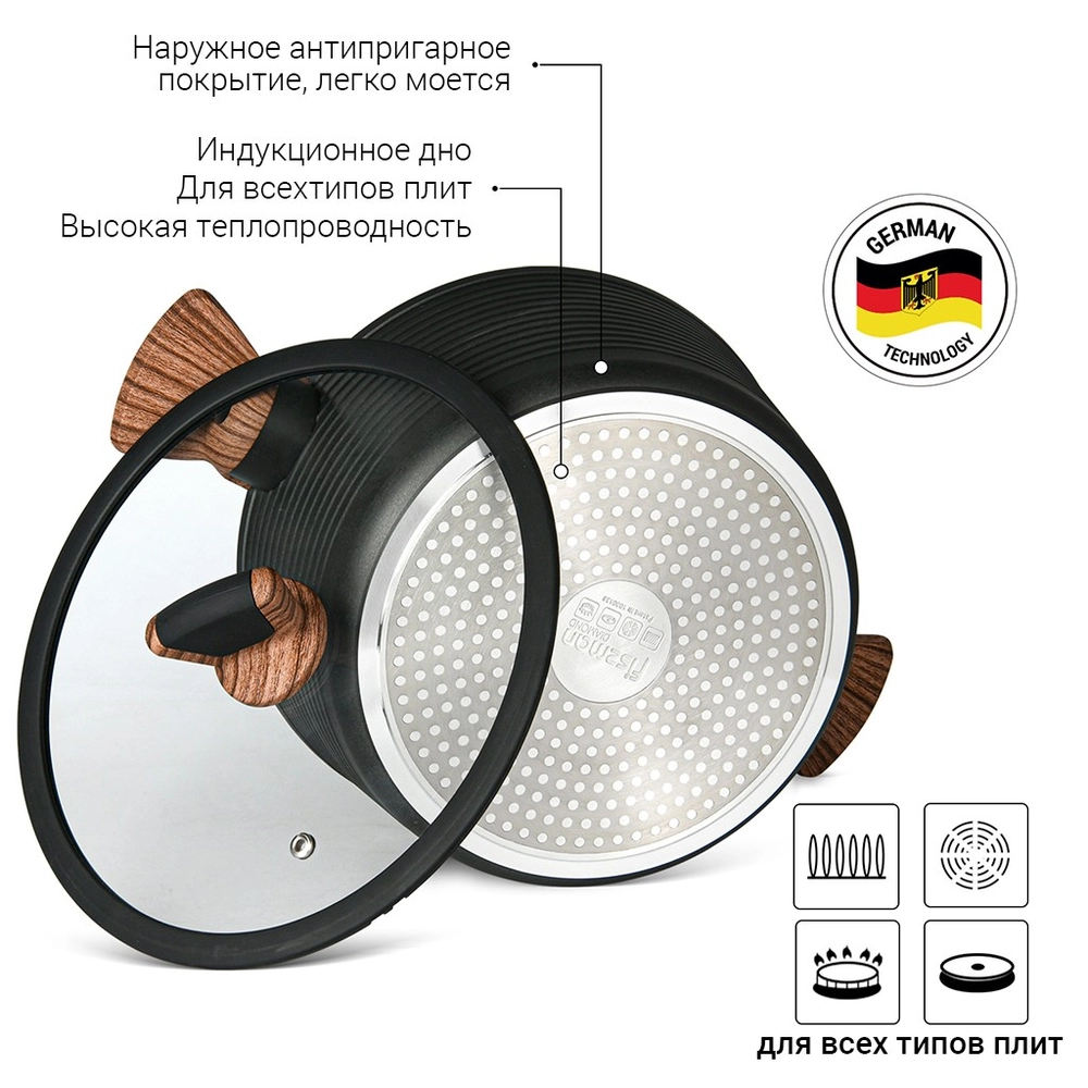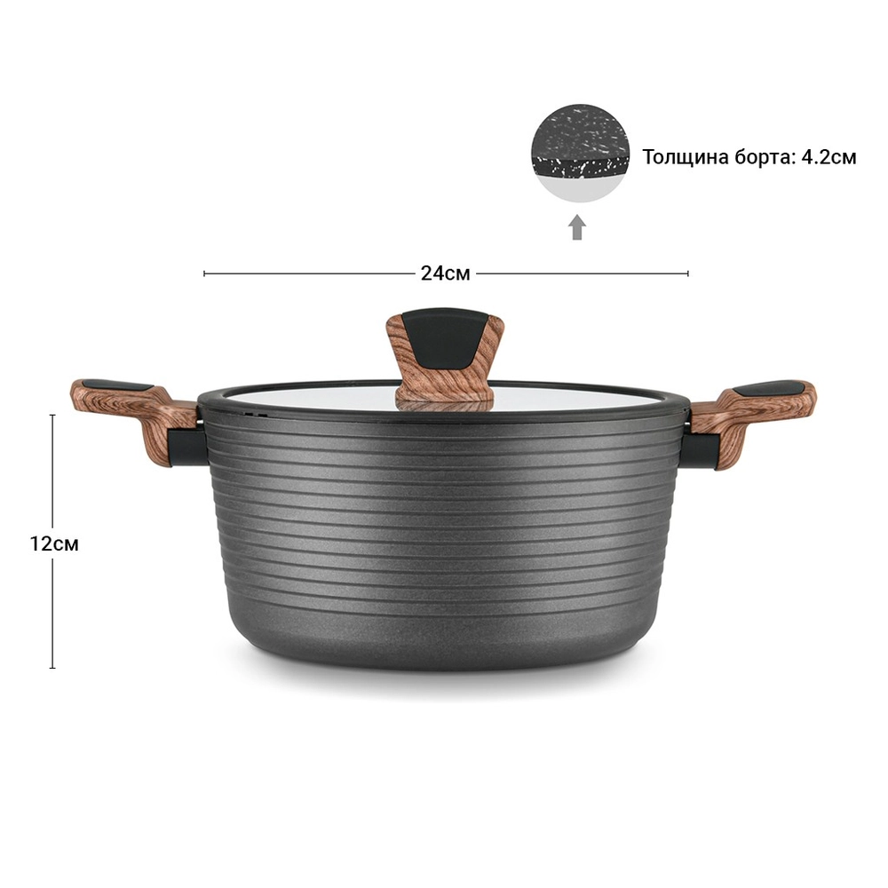 Каструля DIAMOND GREY 24x12 см / 4,5 л зі скляною кришкою (алюміній з антипригарним покри 4304 Fissman - купити в магазині