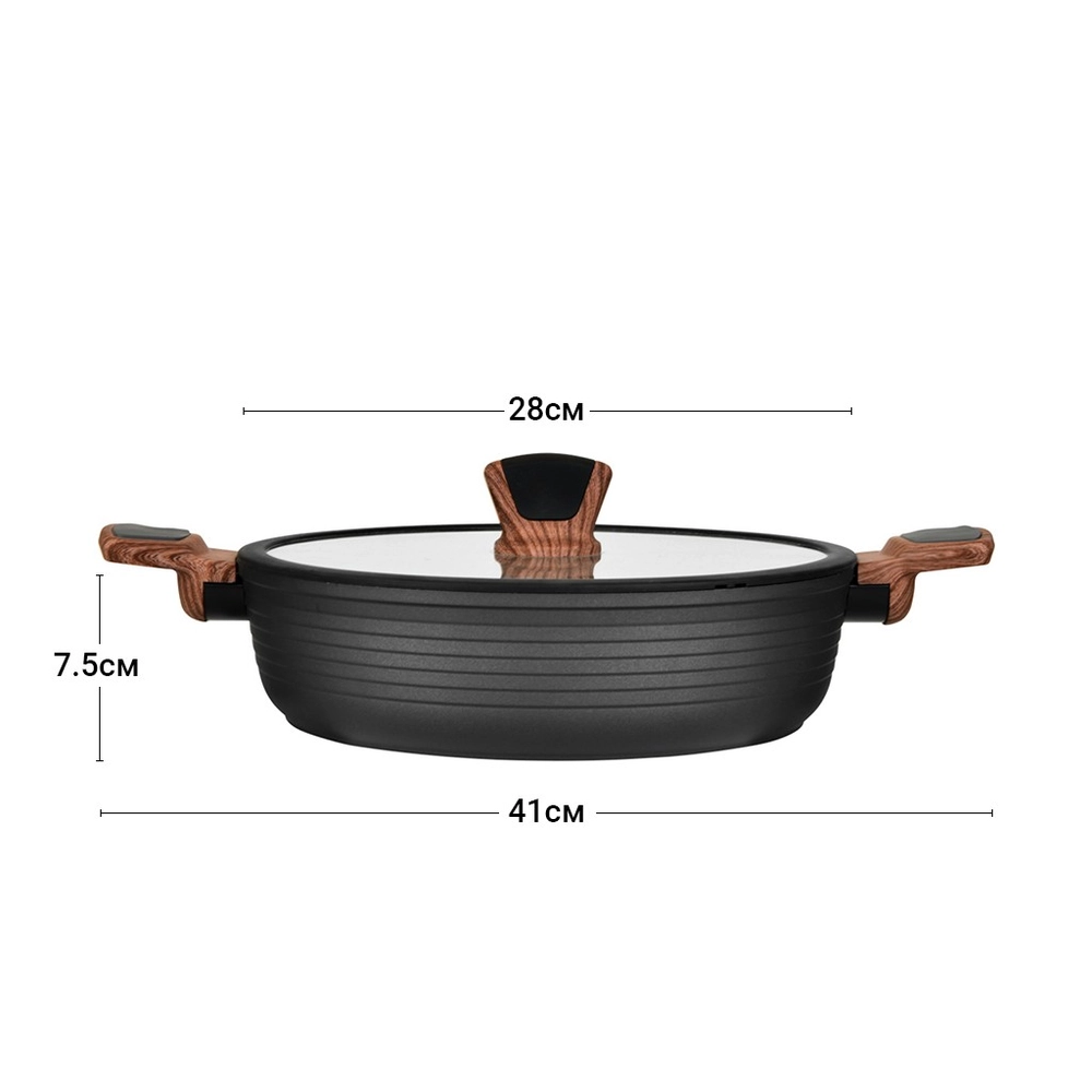 Сотейник DIAMOND GREY 28x7,5 см / 4,1 л зі скляною кришкою (алюміній з антипригарним покриттям) 4306 Fissman - купити в магазині