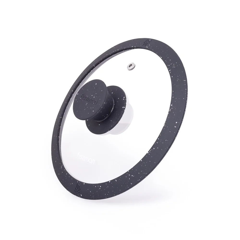 Кришка ARCADES 18 см з "мармуровим" силіконовим обідком ЧОРНИЙ колір (скло) 19901 Fissman - купити в магазині