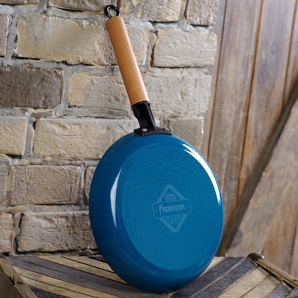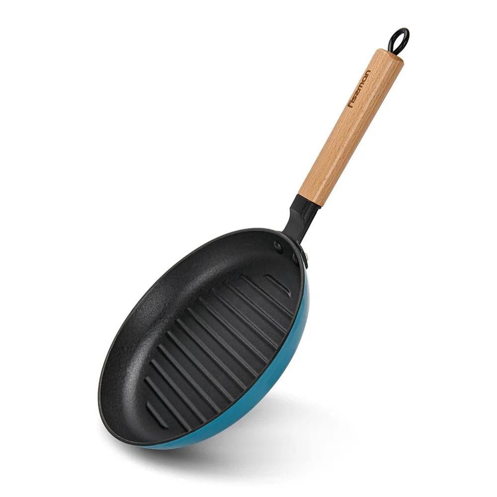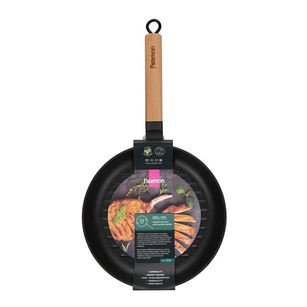 Пательня гриль кругла 24x3,5 см з дерев`яною ручкою (чавун) 4045 - інтернет магазин europosud.ua!