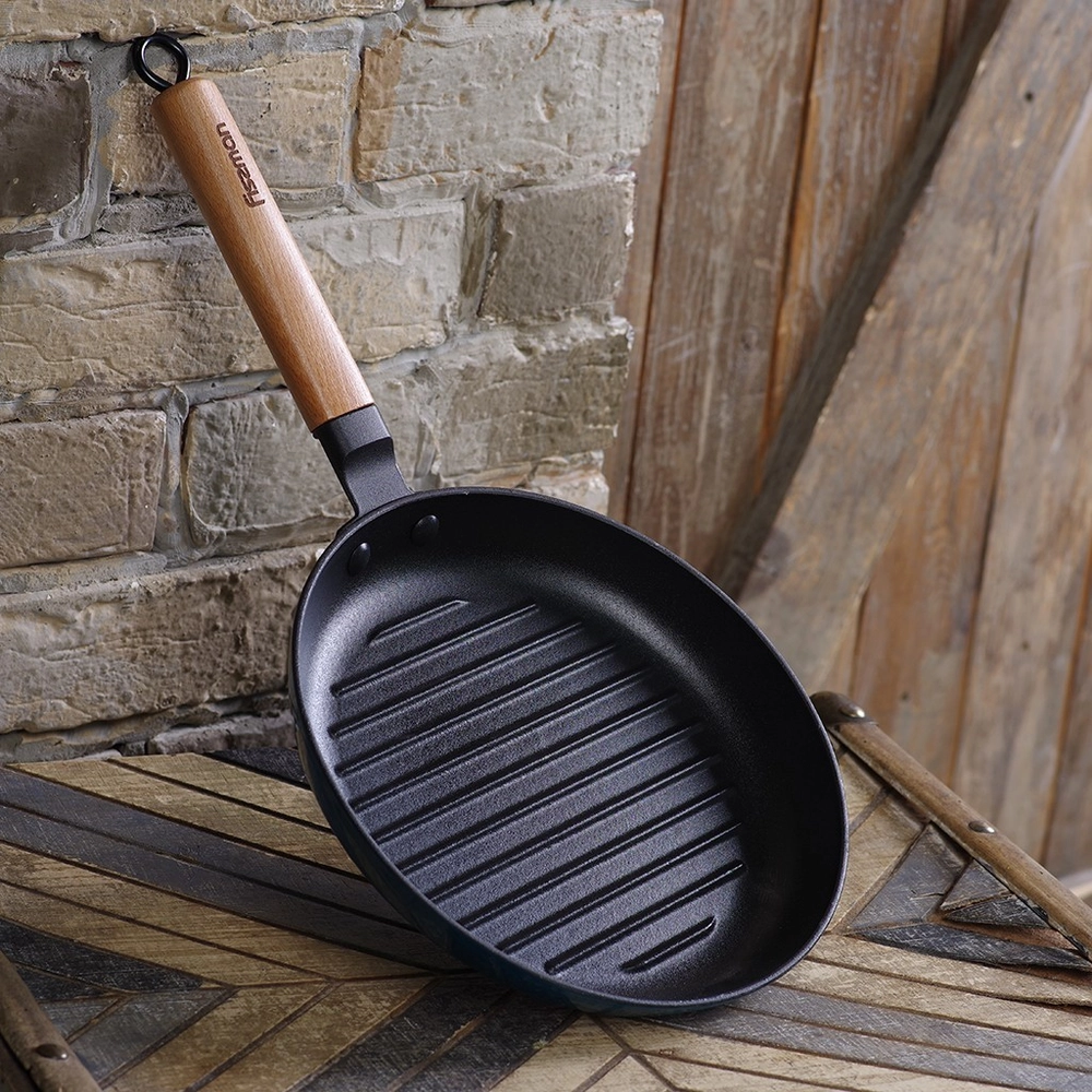 Пательня гриль кругла 24x3,5 см з дерев`яною ручкою (чавун) 4045 - купити в магазині