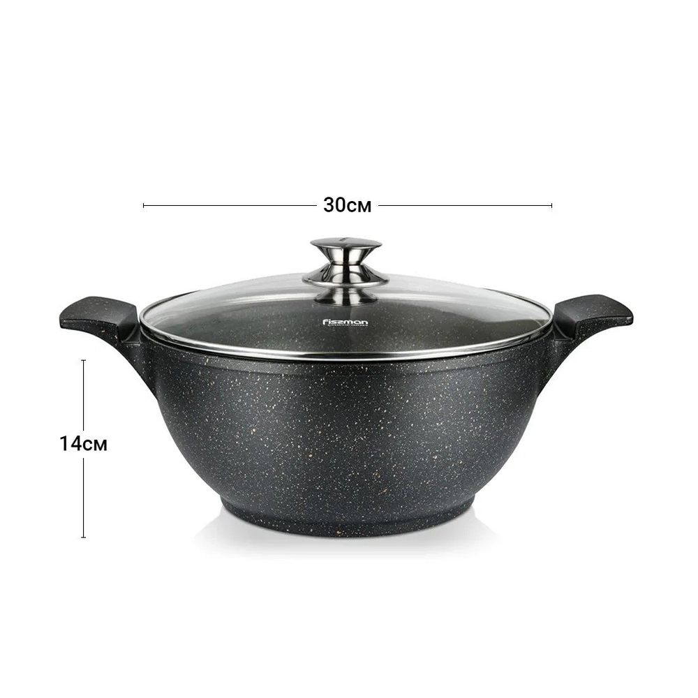 Каструля GRANDE 30x14 см / 7,7 л зі скляною кришкою (алюміній з антипригарним покри 14321 Fissman - купити в магазині