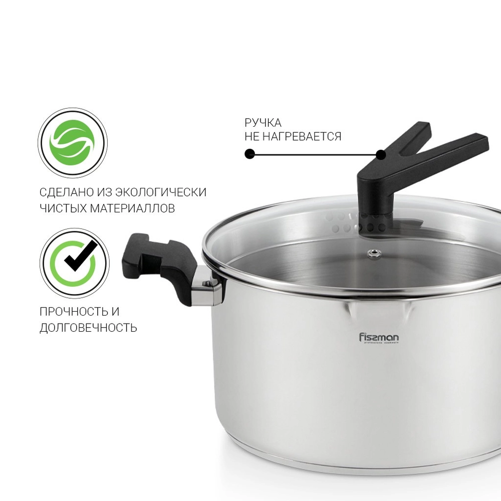 Каструля ELIZ 24x13 см / 5,6 л. зі скляною кришкою(нерж. сталь) 5319 Fissman - купити в магазині