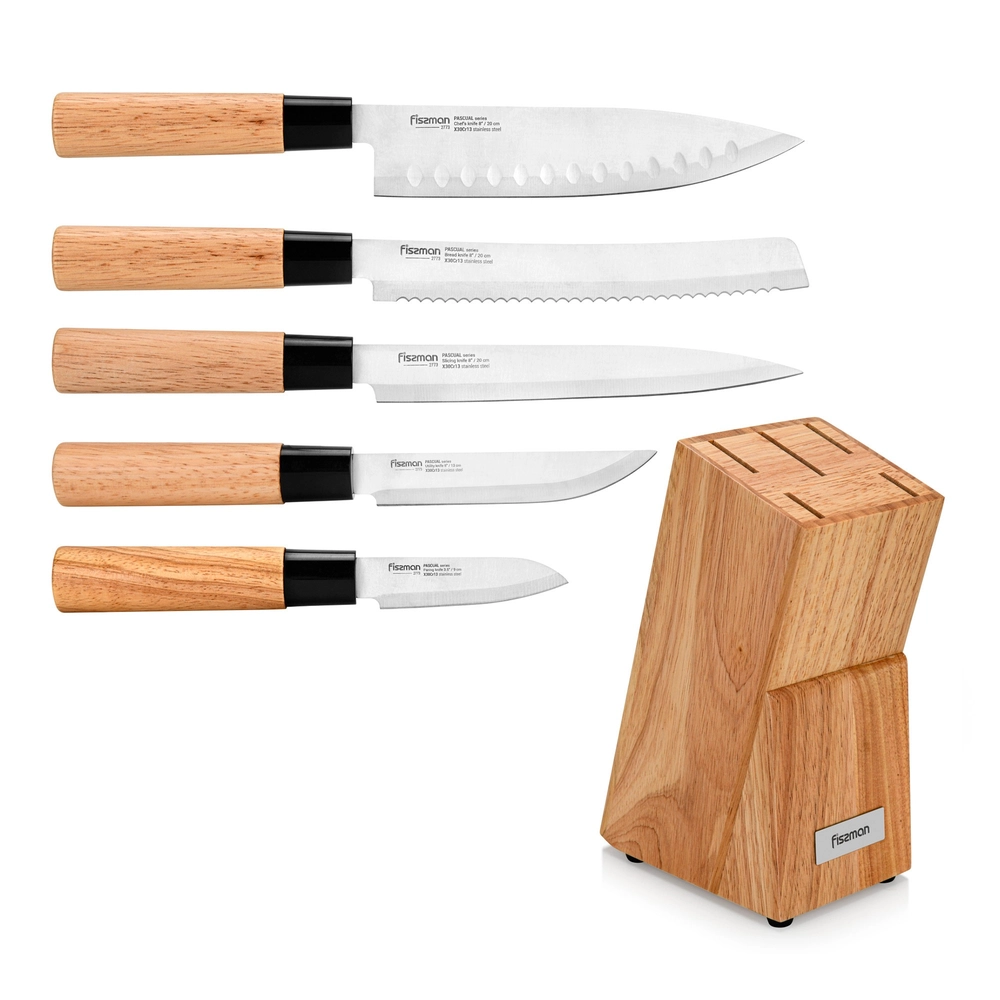 Набір ножів 6 пр. PASCUAL у дерев'яній підставці (X30Cr13 сталь) 2773 Fissman - купити в магазині