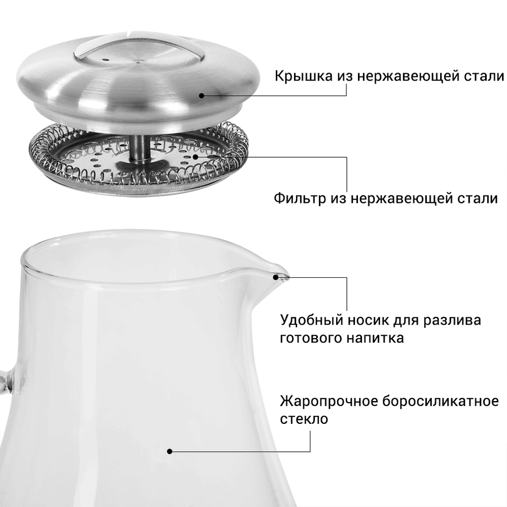 Глечик для гарячих та холодних напоїв з фільтром 1800 мл мл (скло) 6439 Fissman - інтернет магазин europosud.ua!