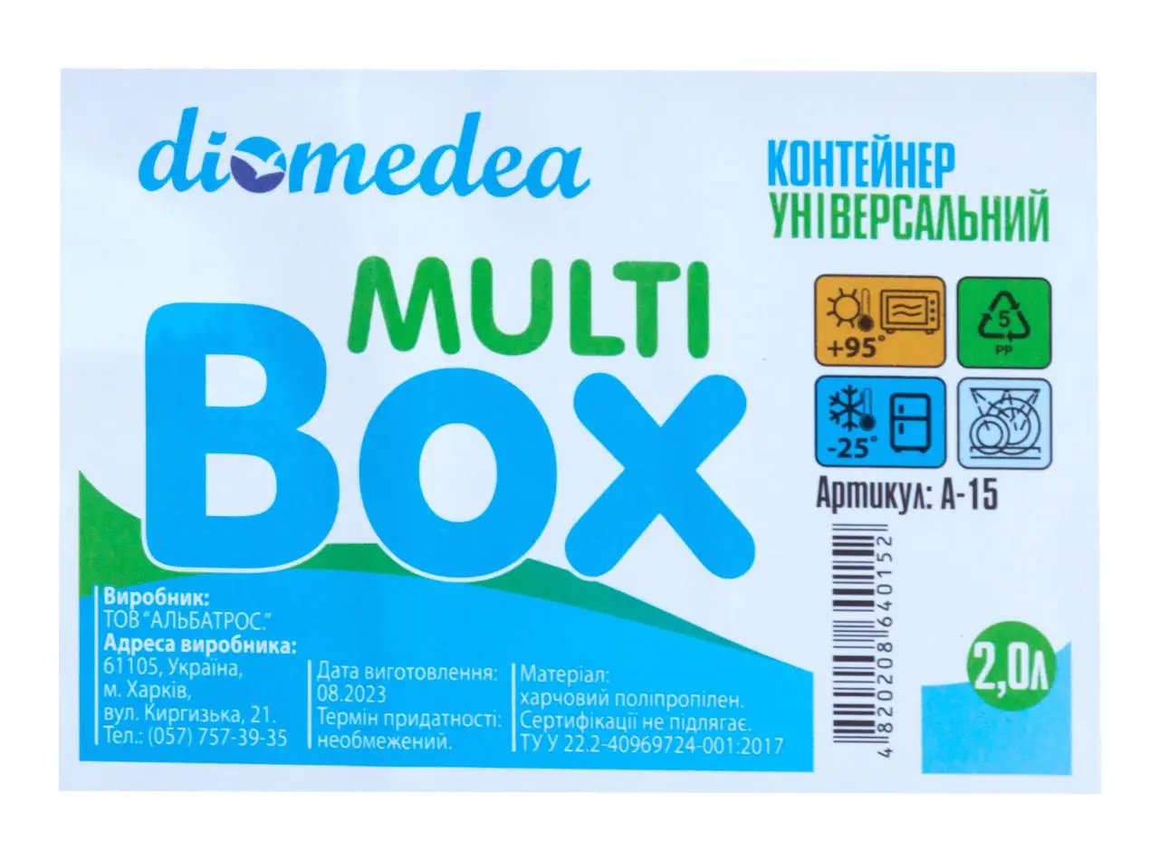 А-15 Бокс універсальний прямокутний з ручками №15 2,0 л Diomedea 24 шт - інтернет магазин europosud.ua!