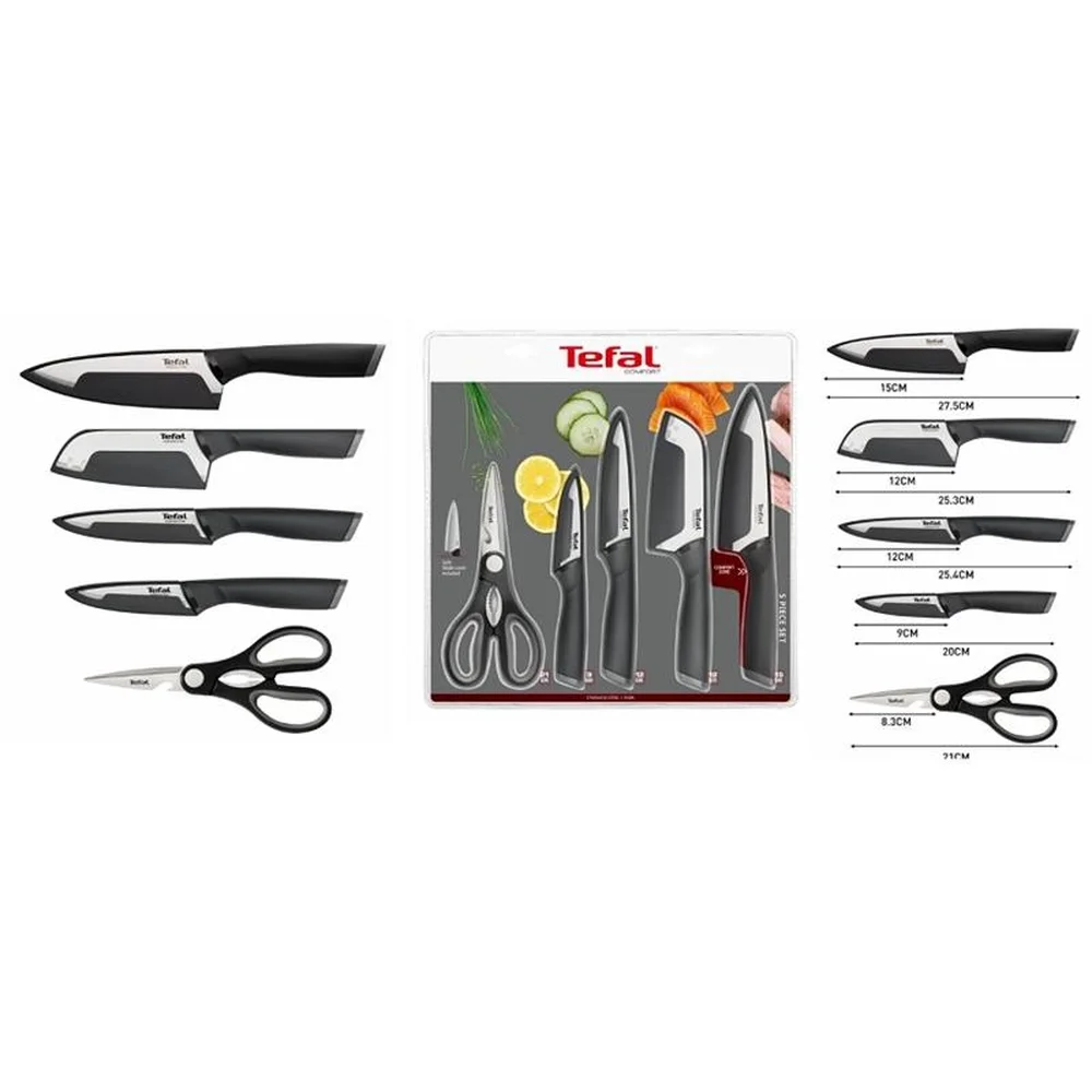 Набір ножів Tefal Comfort, 5предметів, нержавіюча сталь, пластик, чорниц K2215S55 - купити в магазині