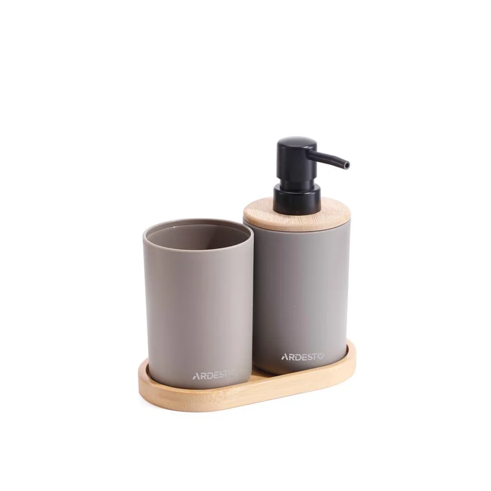 Набір для ванної кмінати Ardesto Minimalism 360мл, 3 предмети, поліпропілен, бамбук, тауп ARHB3112CB - інтернет магазин europosud.ua!