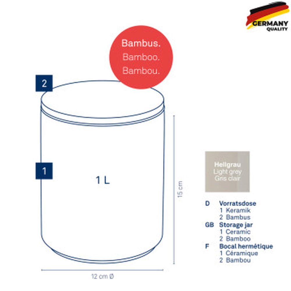 Ємність для зберігання сипучих KELA Cady 1 л, світло-сіра (15277) - інтернет магазин europosud.ua!