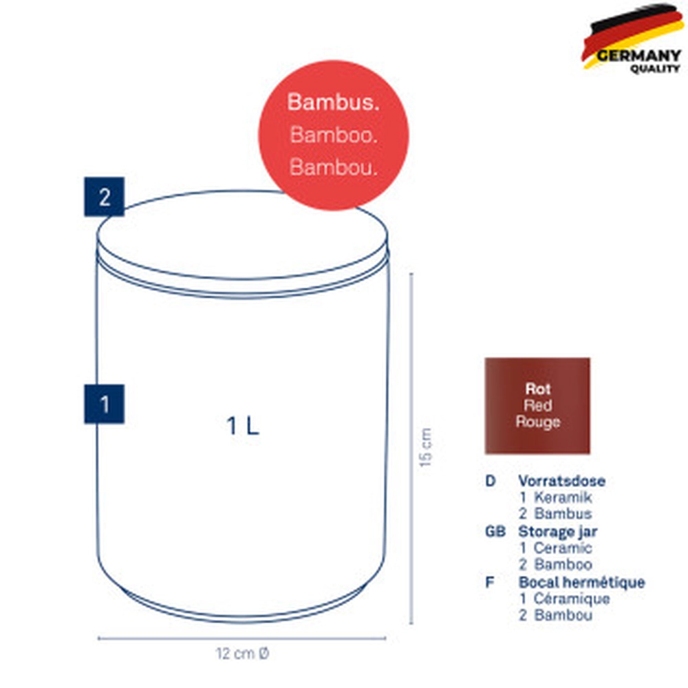 Ємність для зберігання сипучих KELA Cady 1 л, темно-червона (15271) - купити в магазині