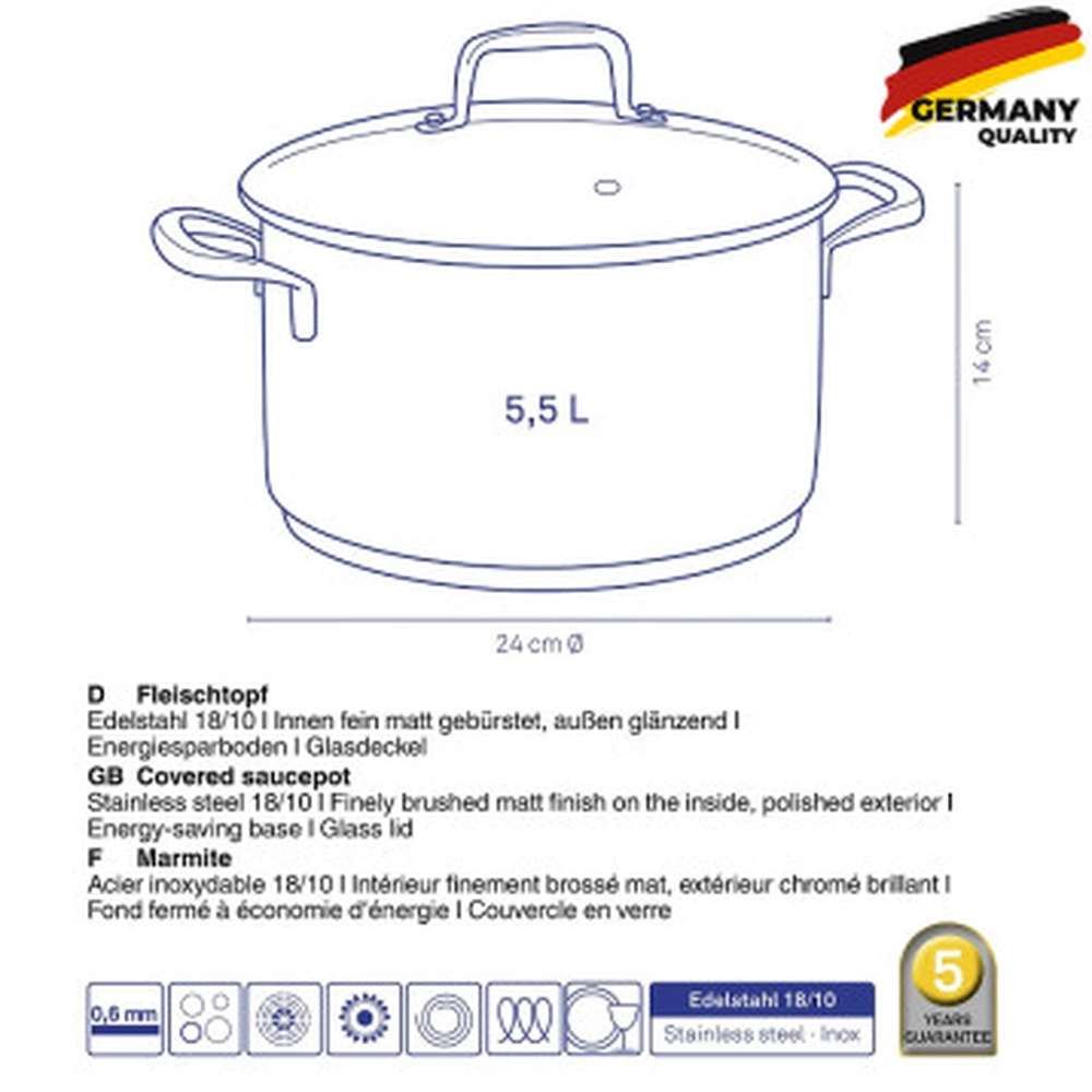 Каструля з кришкою KELA Flavoria, 24 см, 5,5 л (10176) - купити в магазині