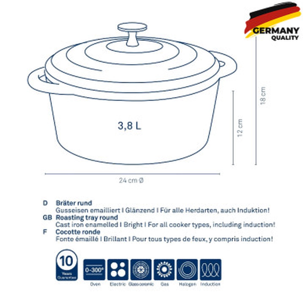Каструля чавунна з кришкою KELA Calido, 3,8 л, чорна (12471) - купити в магазині