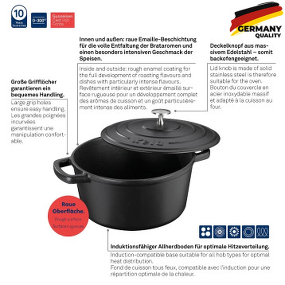Каструля чавунна з кришкою KELA Calido, 3,8 л, чорна (12471) - інтернет магазин europosud.ua!