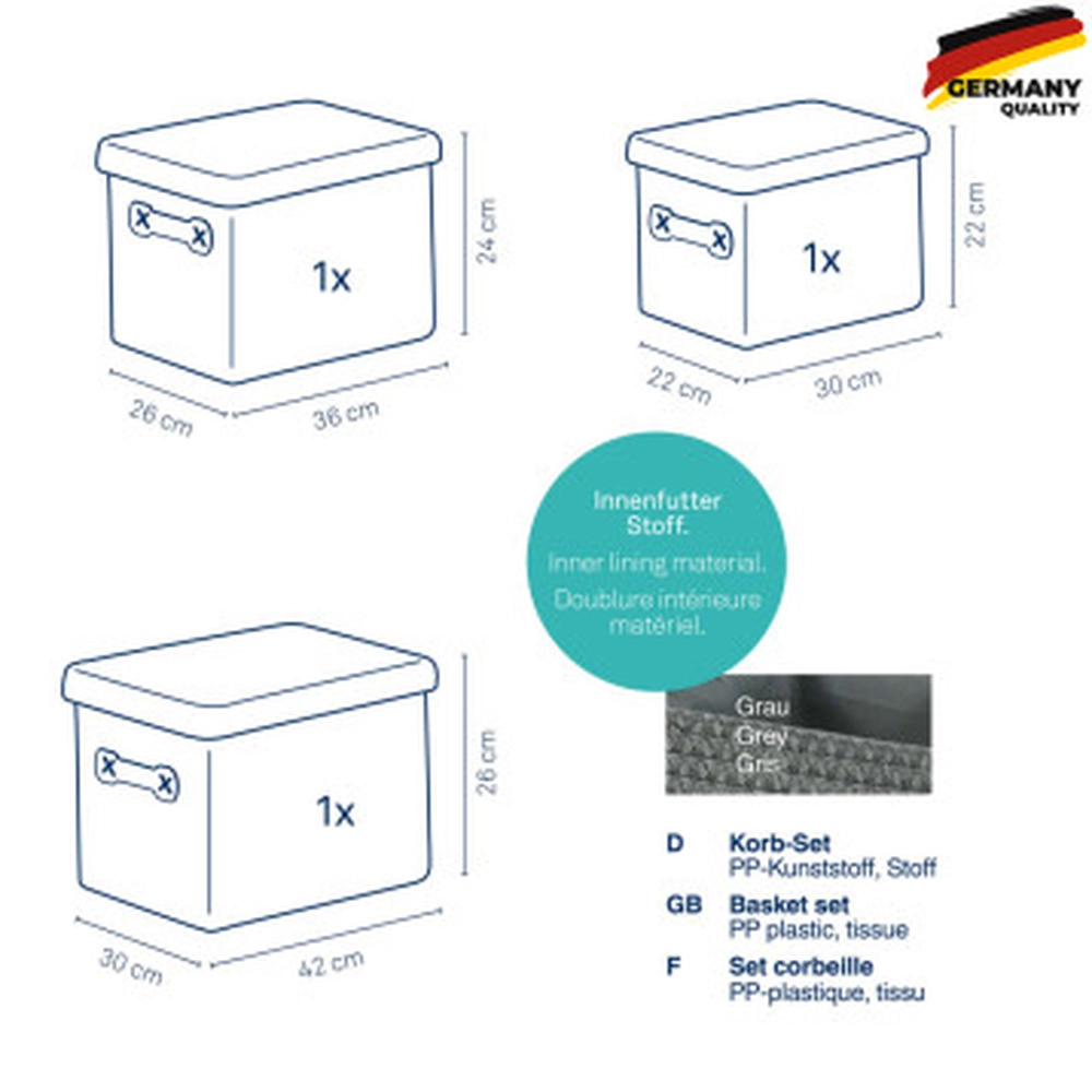 Набір кошиків KELA Rimossa, сірий, 3 шт (31280) - купити в магазині