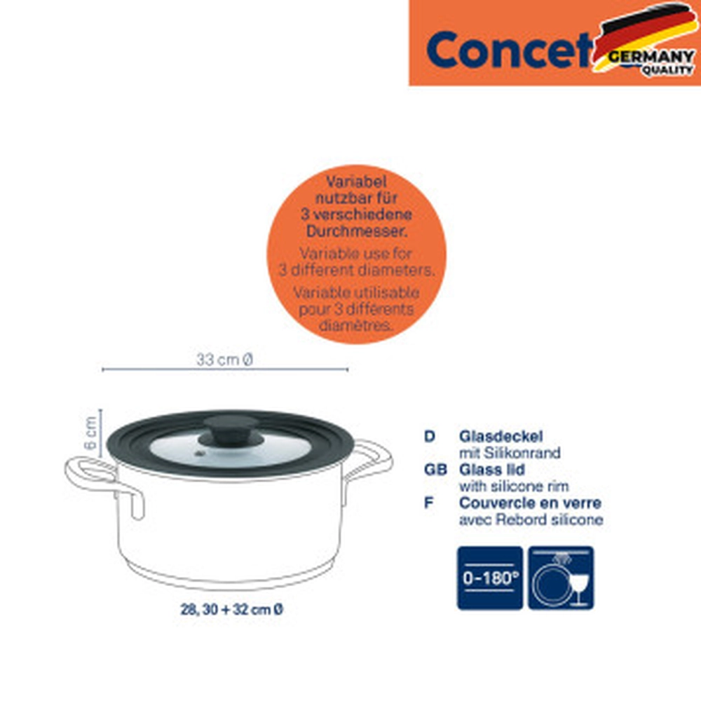 Кришка скляна з силіконовим обідком KELA Concetta, 28-32 см (11442) - інтернет магазин europosud.ua!