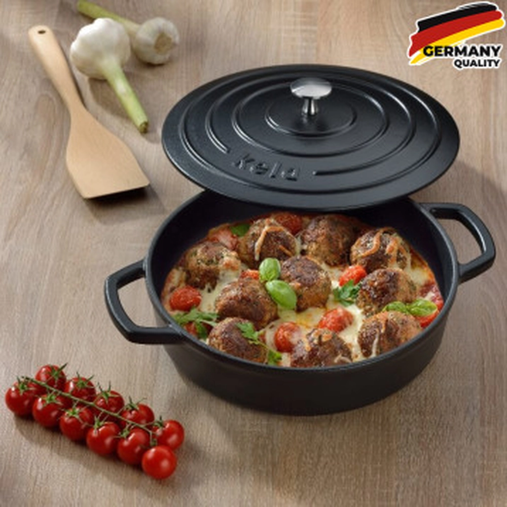 Сотейник чавунний з кришкою KELA Calido, 28 см, 3,2 л, чорний (12468) - інтернет магазин europosud.ua!
