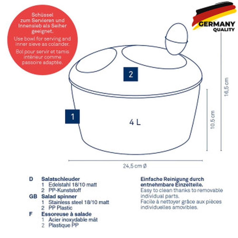 Сушка для салата KELA Romy срібляста, 24.5х12 см (12149) - купити в магазині