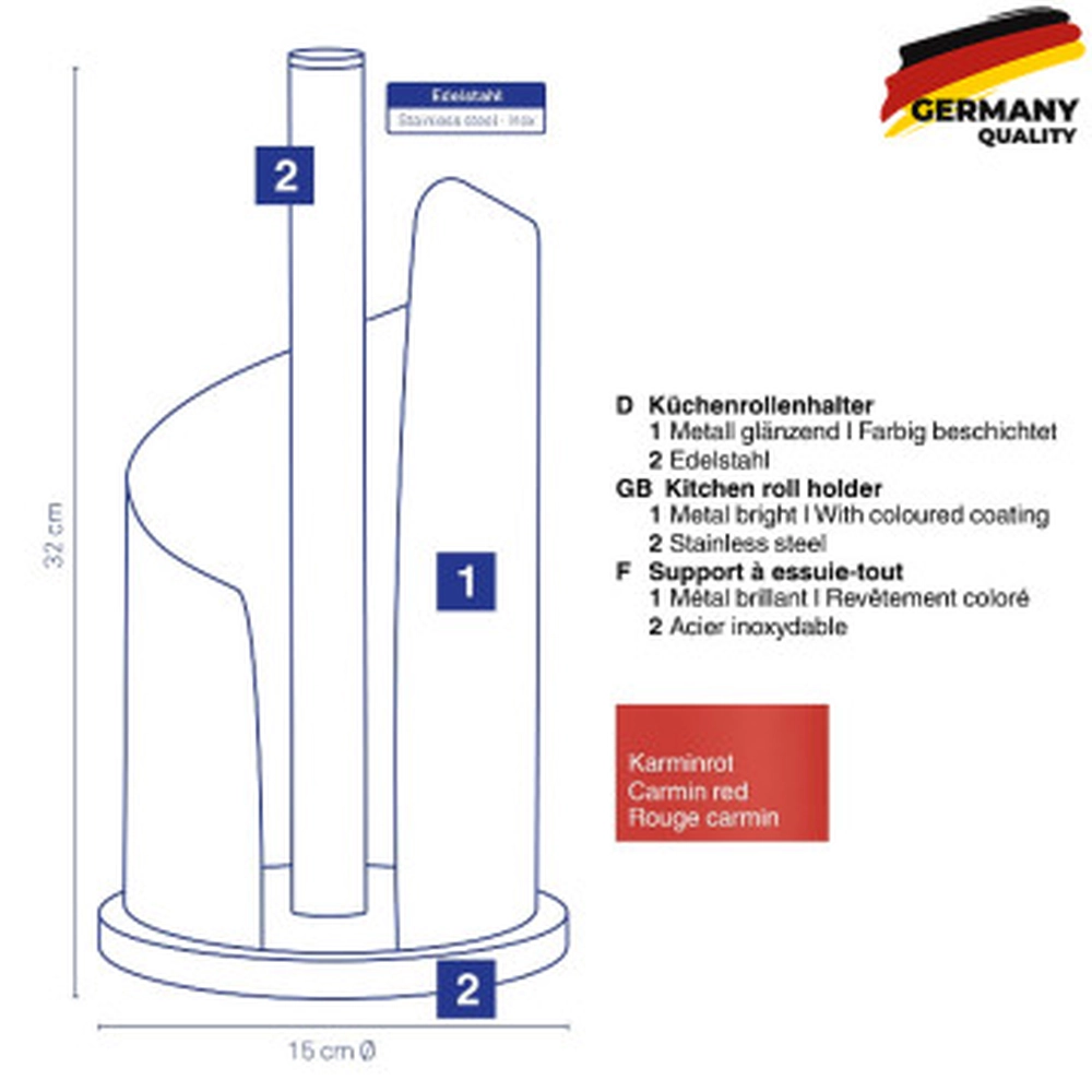 Тримач паперових рушників KELA Stella,15х32 см, червоний (11241) - інтернет магазин europosud.ua!