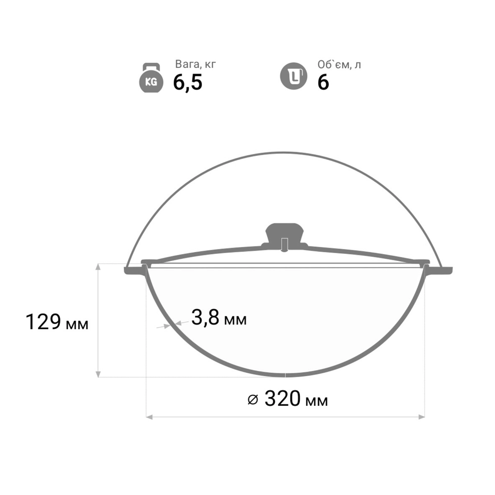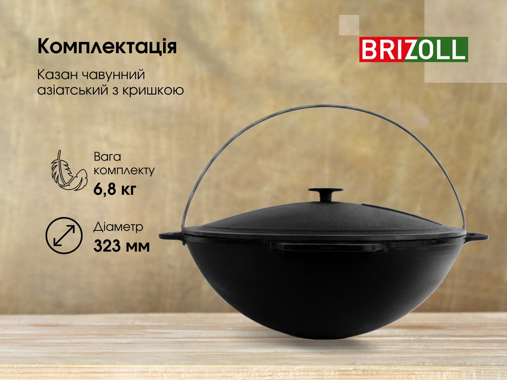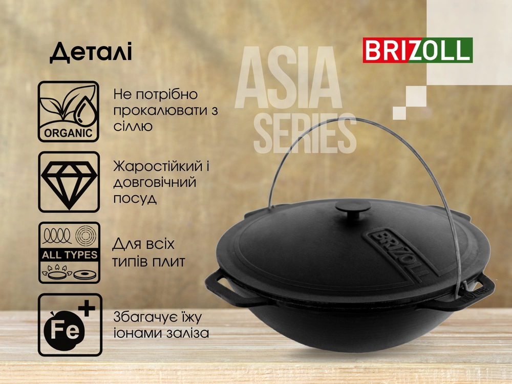Казан чавунний азіатський з кришкою 6 л та триногою - купити в магазині