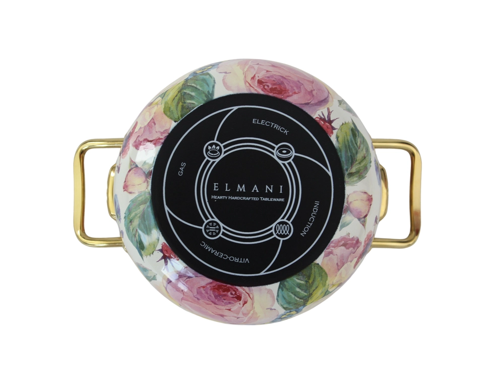 Каструля емальована "PEONY" Elmani з кришкою, 2,1 л, 16 см - інтернет магазин europosud.ua!